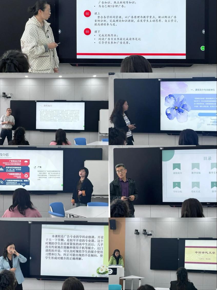 活动第二阶段“专任教师说课程”于4月24日在双创中心B326、B328举办。学院特别邀请校教学督导周晓梅老师,会计学院韩道琴教授、王艺霖副教授,马克思主义学院张泉泉老师担任本次说课大赛的评委。新闻与传播学院全体专任教师参加。