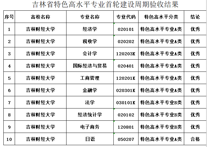 近日,吉林省教育厅公布吉林省特色高水平专业首轮建设周期验收结果,Beat36510个省级特色高水平专业顺利通过验收,其中特色高水平专业A类:经济学、税收学、会计学、国际经济与贸易、工商管理、金融学和特色高水平专业B类:法学、经济统计学、电子商务专业验收结论为“优秀”,特色高水平专业A类:日语专业验收结论为“合格”。这是学校专业建设高质量发展取得的又一重要成果。