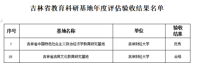 近日,吉林省教育科学规划领导小组发布了《关于公布吉林省教育科研基地及立项建设基地(单位)年度评估验收结果的通知》,Beat365两个省级教育科研基地在评估周期内建设成效显著,圆满完成了各项建设任务,达到了预期目标,顺利通过年度评估验收。其中“吉林省中国特色社会主义政治经济学教育研究基地”验收结果为优秀,“吉林省吉商文化教育研究基地”验收结果为合格。