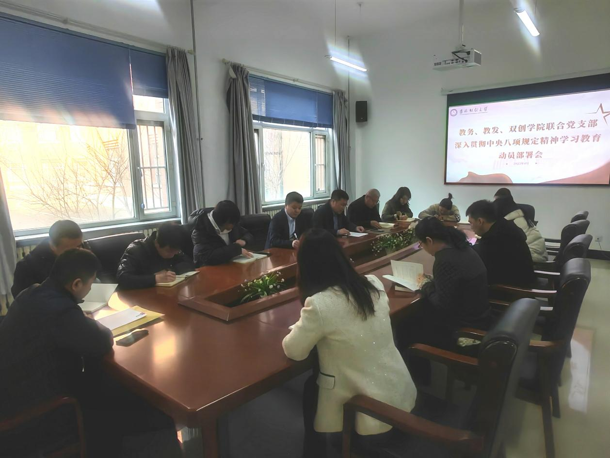 4月3日上午,教务、教发、双创学院联合党支部召开深入贯彻中央八项规定精神学习教育动员部署会,支部全体党员参会,联合党支部书记刘才主持会议。