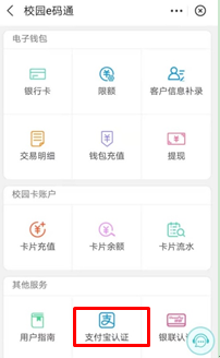 微信小程序搜索“校园E码通”,按照提示验证身份,开通电子钱包,进行微信认证。认证后即可使用微信付款码支付。