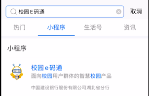 微信小程序搜索“易校园”,然后首次需绑定和激活(流程同上),出示界面中的付款码即可支付。