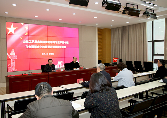 3月14日,学校在长清校区召开传达学习习近平总书记在全国两会上的重要讲话精神报告会。本次报告会,也是一次党委扩大会议和党委理论学习中心组扩大会议。报告会由党委书记何思清主持。全国政协委员、院长潘鲁生作主题报告。副院长李新、纪委书记苗新民、副...