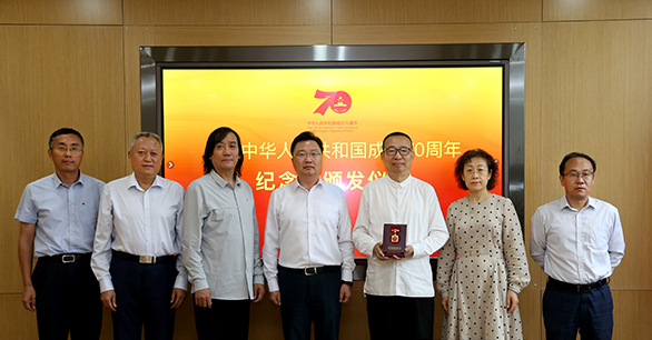 9月12日上午,学校在党委会议室举行“庆祝中华人民共和国成立70周年”纪念章颁发仪式。校领导何思清、潘鲁生、苗登宇、李新、苗新民、董占军、韩世春出席仪式。党委书记何思清主持仪式并向潘鲁生颁发“庆祝中华人民共和国成立70周年”纪念章。何思清指出,...