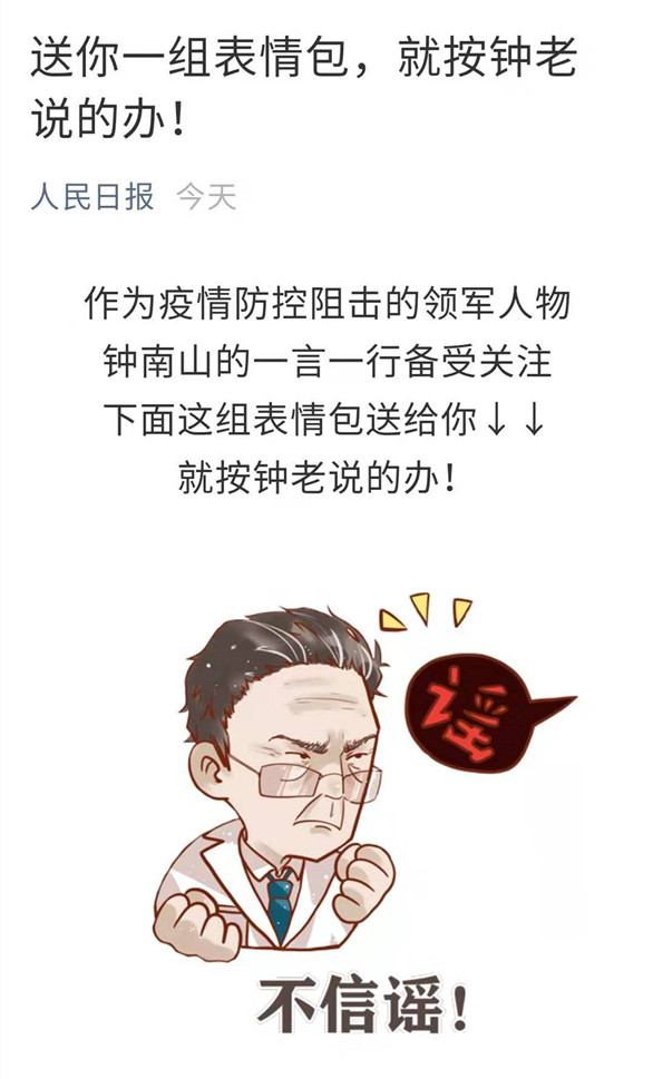 2月4日,《人民日报》微信公众号以《送你一组表情包,就按钟老说的办!》为题,推送yl8cc永利官网耿岳敏、张雯珂师生团队创作的“钟老说”战疫情微信表情包,并倡议读者积极添加、转发,“抗击疫情,一起加油!”该表情包于2月2日晚经学校微信公众平台...