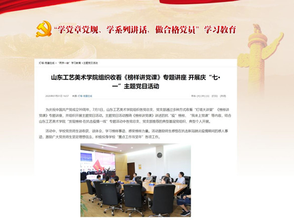 7月1日,为庆祝中国共产党成立99周年,yl8cc永利官网组织开展“七·一”主题党日活动。“灯塔—党建在线”网络平台、齐鲁网·闪电新闻等媒体平台对活动给予关注,并第一时间进行报道。活动中,广大党员师生认真收看“灯塔大讲堂”《榜样讲党课》专题讲座...