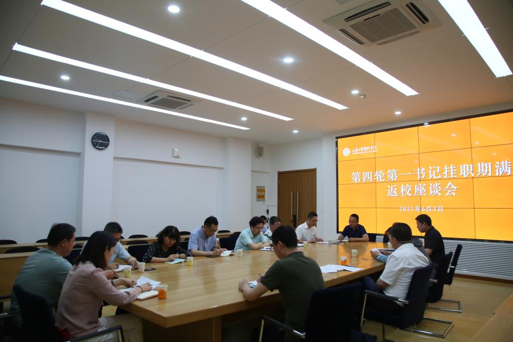 6月3日上午,学校在长清校区第三会议室召开第四轮第一书记挂职期满座谈会,欢迎圆满完成任务的第一书记、驻村工作队队员回校工作。党委书记何思清出席会议并讲话,党委副书记苗登宇,党委委员、宣传部部长、党办院办主任韩文涛出席会议。党委委员、组织部...