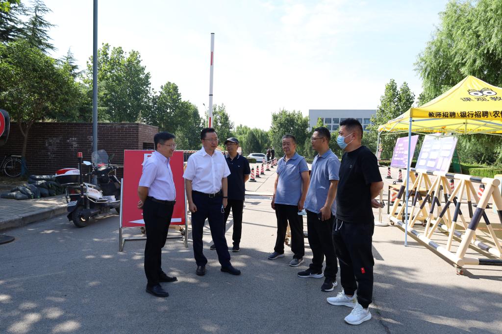 8月26日上午,党委书记何思清,副书记苗登宇,党委委员、宣传部部长韩文涛检查新学期开学疫情防控工作落实情况,并实地察看学生食堂改造工程项目、国家产教融合发展工程项目以及文化创意产业实训中心工程项目建设进展情况。办公室、学生处、后勤管理处、基...