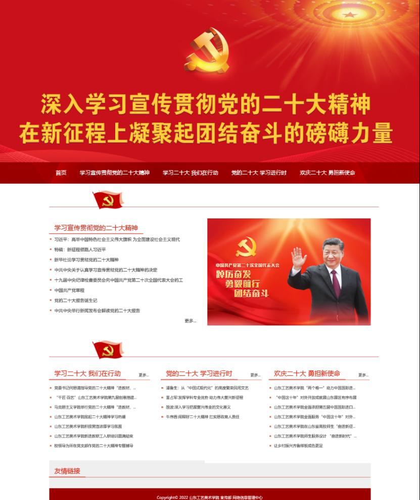 扎实做好党的二十大精神学习宣传贯彻工作,把全校师生的思想统一到党的二十大精神上来,按照学校党委工作部署,党委宣传部于今日开设“学习宣传贯彻党的二十大精神”专题网站。专题网站开设“学习宣传贯彻党的二十大精神”“学习二十大 我们在行动”“党的...