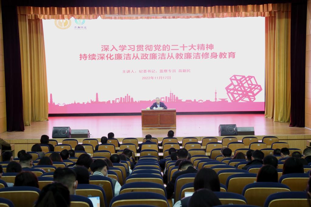 根据省纪委监委关于对年轻干部、新入职教师、新发展青年党员和应届毕业生等群体开展廉洁教育工作部署和学校党委学习宣传贯彻党的二十大精神要求,11月17日下午,学校在长清校区学术报告厅举办“青廉课堂”。学校党委委员、纪委书记、监察专员苗新民作了题...