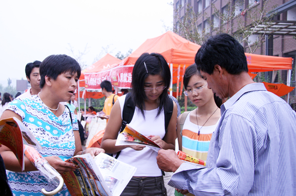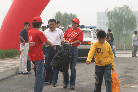 志愿服务暖人心 9月14日,我院长清校区07届新生报到现场秩序井然,在报名现场,随处可见一支支或身着统一服装,或身佩红绸带的流动志愿者队伍。