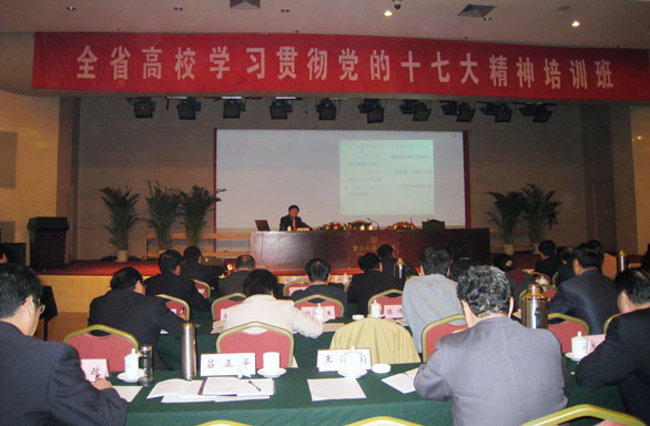 郭兆志副书记参加全省高校学习贯彻党的十七大精神培训班 10月24日至26日,由山东省委高校工委组织的全省高校学习贯彻党的十七大精神培训班在铁道大酒店召开。