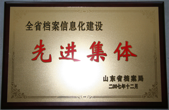 永利官网被授予山东省档案信息化建设先进集体荣誉称号 近日,永利官网被山东省档案局授予“山东省档案信息化建设先进集体”荣誉称号。