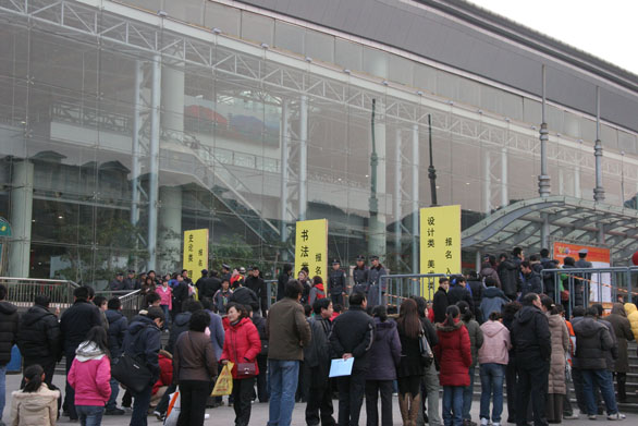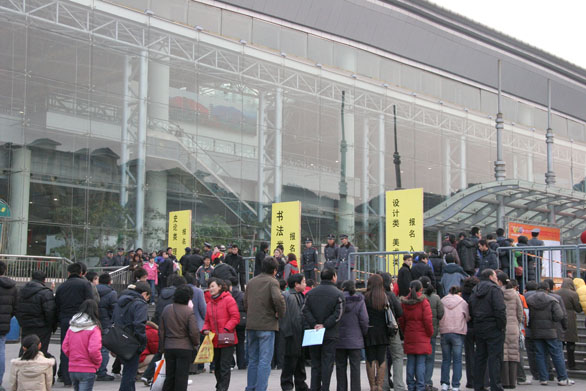永利官网2008年专业考试现场报名正式开始 2月18日上午,济南舜耕国际会展中心广场,来自全省各地的考生及家长们早早来到永利官网2008年专业考试报名现场排起了队伍。