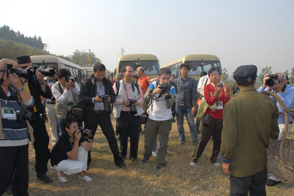 摄影大师采风墨子故里 10月15日上午,中国·济南当代国际摄影双年展进入第四天的行程,海内外摄影家继续在滕州采风创作,墨子故里滕州市木石镇化石沟村成和柴胡店镇葫芦套古村为采风的第三站。