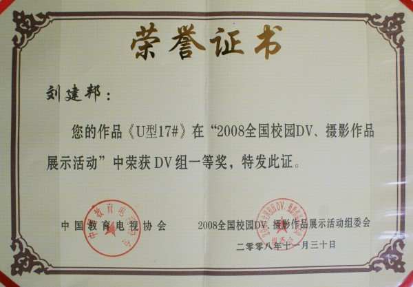 永利官网影视专业学生作品荣获2008全国校园DV展示活动一等奖 yl8cc永利官网数字艺术与传媒学院影视专业学生刘建邦创作的短片《U型17井》,荣获由中国教育电视协会主办的“2008全国校园DV 摄影作品展示活动”DV 作品一等奖。