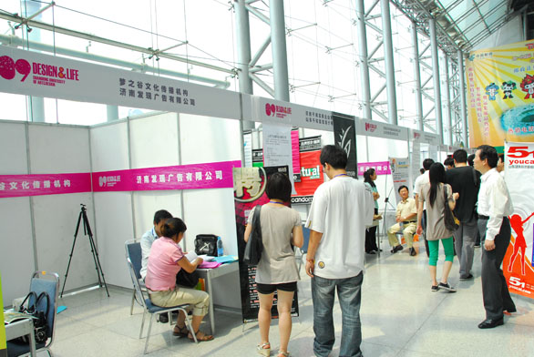 设计博览会上众企业觅人才 5月27日上午,永利官网2009年设计艺术博览会暨2009届毕业生推介会在舜耕国际会展中心开幕。