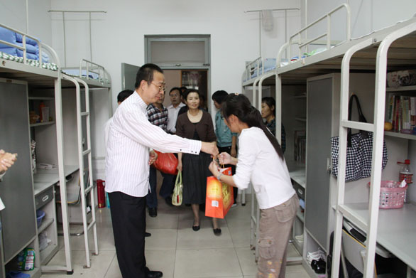 学校领导佳节前走访慰问学生 9月30日下午,在国庆和中秋佳节即将来临之际,院长潘鲁生、副院长张云龙,院长助理、办公室主任王立果一行来到学生公寓,走访慰问在校学生,给同学们送来了温馨的问候与祝福。