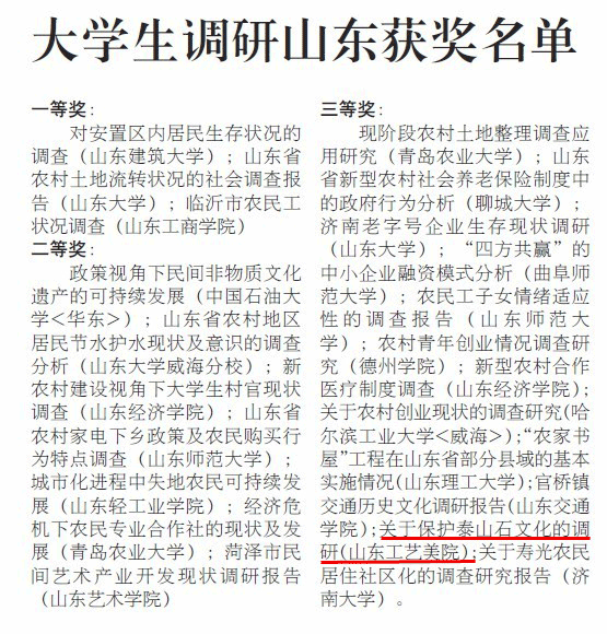 永利官网在首届“调研山东—— 《大众日报》大学生社会调研活动”中喜获佳绩 2009年6月,为鼓励我省在校大学生暑期广泛开展社会调查活动,增进学生对社会的了解,大众日报发起首届“调研山东--《大众日报》山东大学生社会调查活动”...